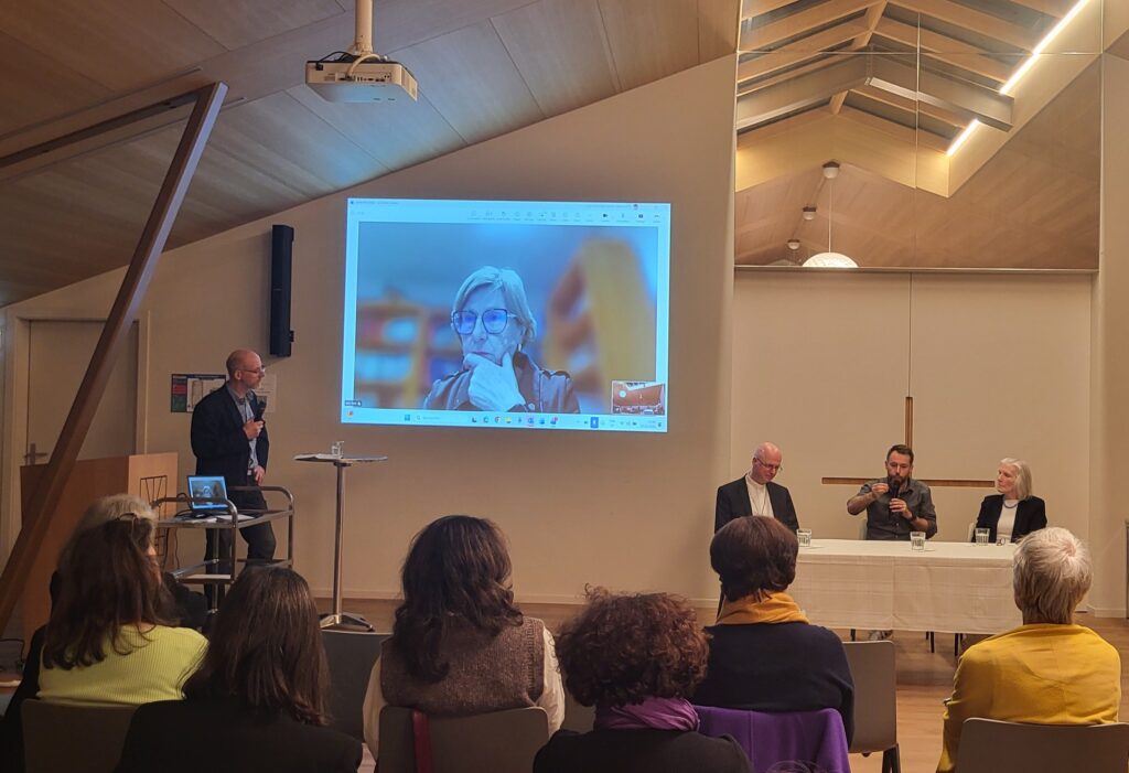 À l’heure du débat, animé par Fabien Hunenberger, journaliste et directeur de Cath-Info, Isabelle Duriaux parle calmement. Devant elle, une assemblée attentive. À ses côtés, l’évêque du diocèse de Lausanne, Genève et Fribourg, Mgr Charles Morerod, le réalisateur du film Pierre Pistoletti et la théologienne Marie-Jo Thiel, connectée à distance.