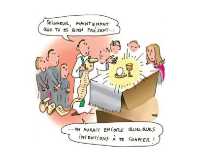 Lors de la messe, après la consécration et l’épiclèse (invocation de l’Esprit Saint) sur l’assemblée, la prière eucharistique se poursuit par des intercessions qui manifestent la communion de l’Église, l’abbé Pascal Desthieux dans le chapitre 16 de son livre « Au cœur de la messe – Tout savoir sur la célébration » (Editions Saint Augustin). La prière eucharistique se terminera par la doxologie, une grande acclamation.