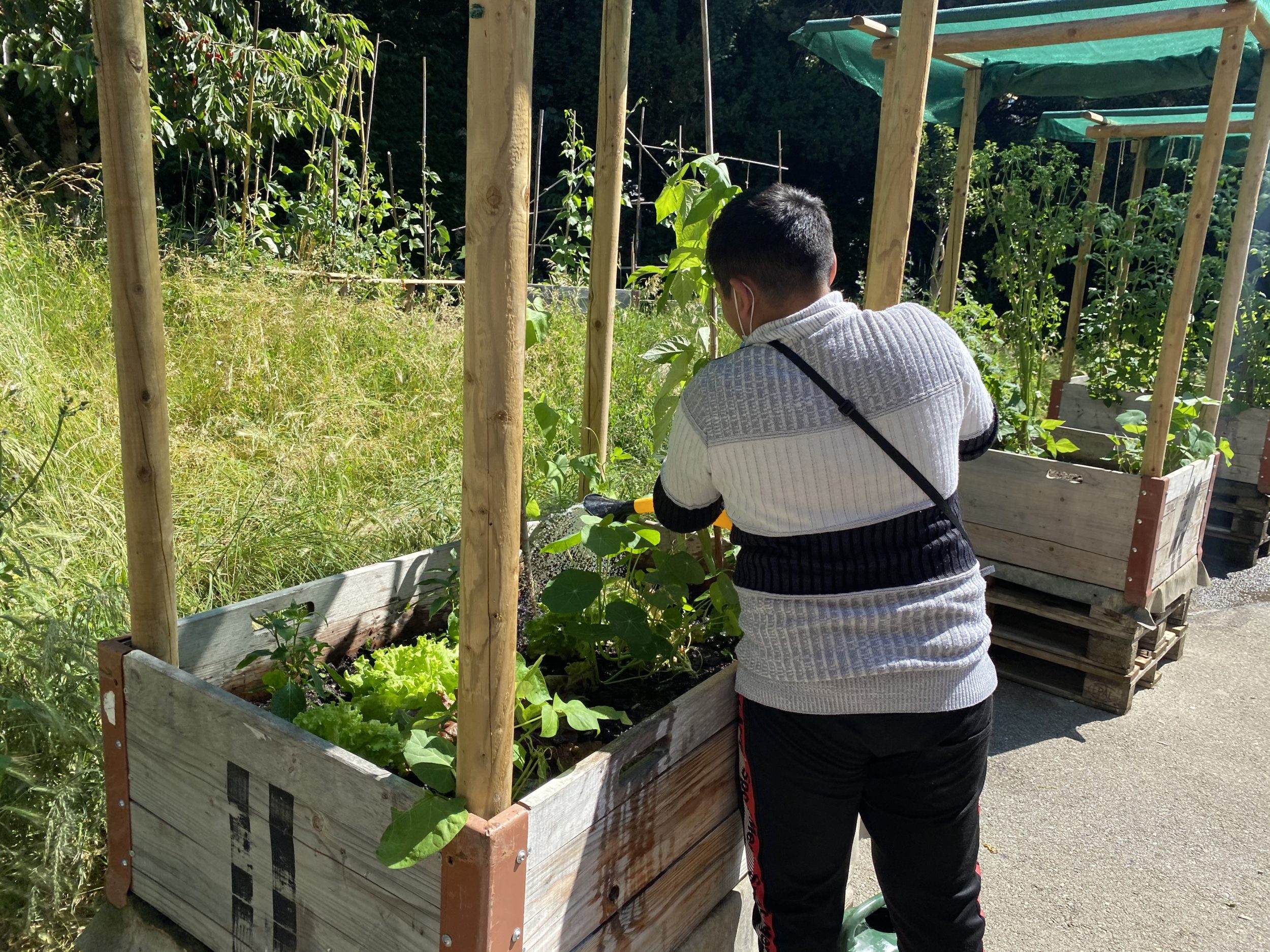 Avant chaque « activité jardin », les jardiniers présents et les bénévoles prennent un temps d’échange. Cela leur permet de se retrouver et de définir les objectifs de la journée. En été, une séance de jardinage par semaine est organisée, et il faut aussi venir arroser la terre trois fois par semaines.