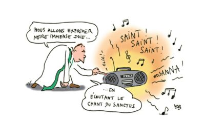Par le chant du Sanctus, nous célébrons ainsi la gloire de Dieu avec les anges, dans une ambiance de grande fête. Les liturgistes demandent donc que cette acclamation soit chantée par toute l’assemblée, avec force et joie.