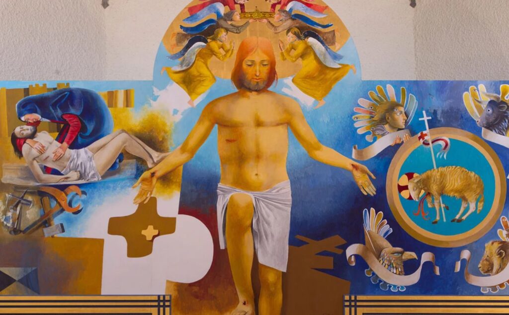 Les rouges deviennent incandescents pour le Ressuscité qui embrasse sa Mère après la tempête du Vendredi Saint.